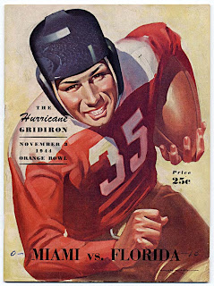 The end of the American college football season is nigh. For no special reason, this brings to mind the game program publication featuring team rosters surrounded by college sports-related articles and advertising. More specifically, I think of program covers from the days when illustration -- rather than photography -- was in flower.